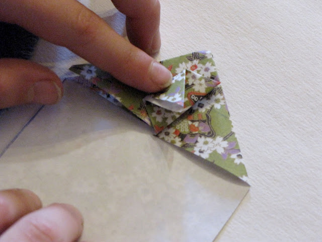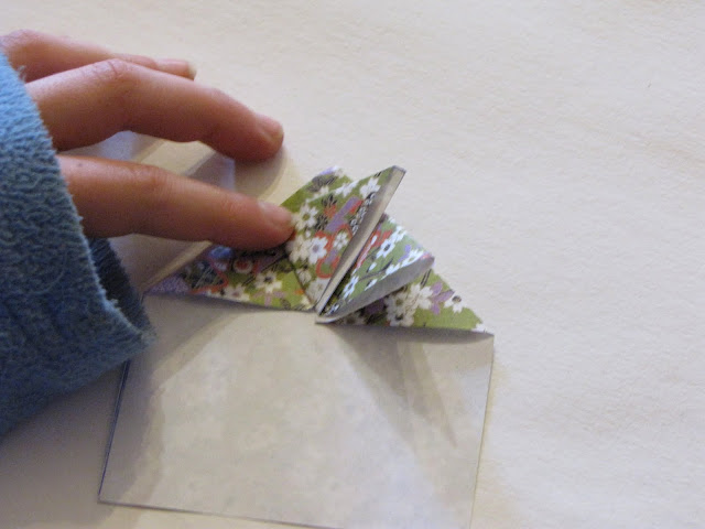 Erin and I really enjoy Origami as long as it is a simple anough design that we can follow, it is a lot of fun:) So we were very excited when we found this little origami frog in our Readers Digest Crafts and Hobbies book and this is our attempt at making him. This is such an amazing book to own, it is just filled with beautiful projects. I have an old edition that my mom-in-law gave to me a few years ago and love it! Some of the photos are a little blurry in my tutorial, but if that doesn’t bother you too much, he really is a sweet craft to make:)