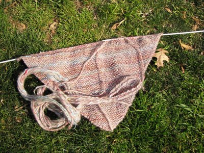 That yarn is beautiful, and I love the kerchief scarf. I just remembered I have a pattern for one of those I bought at a yarn shop a few years ago– now I want to try it. Knitting under the oak tree does sound lovely.
