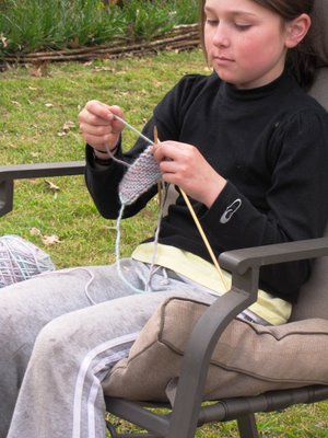 Erin was quite excited about knitting a Kerchief and she went to our wool stash straight away, chose a skein, wound it into a ball of yarn and she was off, knitting one for herself…