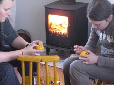 Their smell reminds me of Christmas. We made a whole lot with oranges for our Waldorf School Faire and by the end we had blisters on our fingers from the cloves.