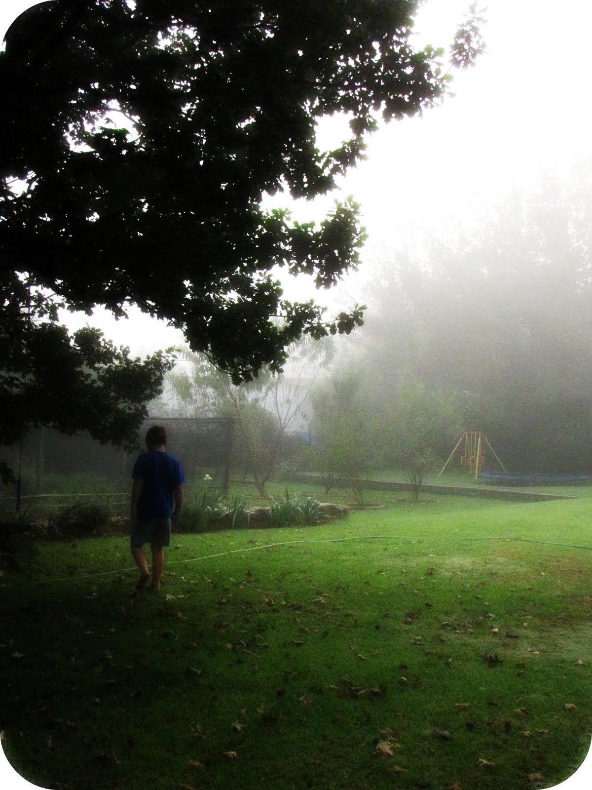 Richard rose early and went for a bike ride and had returned by the time I was awake. Caiden and I went out into the garden at dawn, the mist was so heavy and beautiful…