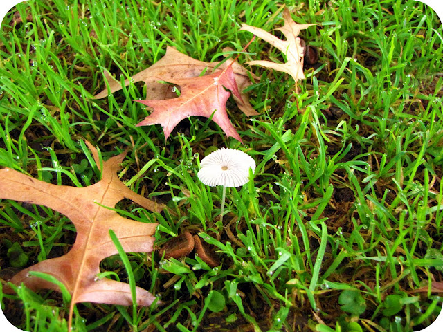 We found fallen autumn leaves, some acorn caps and fairies who have come to visit our garden, living in the sweetest little mushrooms…