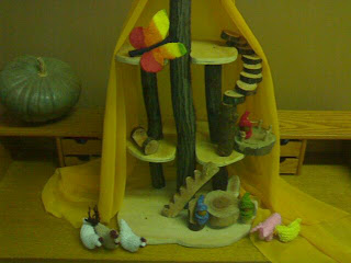 Over the past few months we have been busy making a small playhouse for Caiden. We have almost finished the structure and as you can see Carle’s (South Africa) gnomes have found a new home there. We have also made them some beds to sleep in and some chairs and a table. There are also some knitted projects that we have been busy with, the hens and the duckling and the sheep and the pig. Jenna made the pig and one of the hens and I made the duckling so it has been a nice combined effort! Lots of fun. We still have lots to make. The butterfly was made by Jenna, she felted it herself and then we sewed the body on last, it came out beautifully.