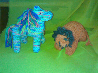 Over the last two days we have all been knitting like mad! I have posted the photo of the Unicorn Jenna has made minus the horn we still have to find a horn for her and then she will be finished, (thanks Kristie for the pattern!). The lion was knitted by Erin and she finished today. Wow all this knitting, it is wonderful!! Jenna has started to knit herself a pair of slippers and Erin is busy with and elephant. My unicorn still needs to be completed.