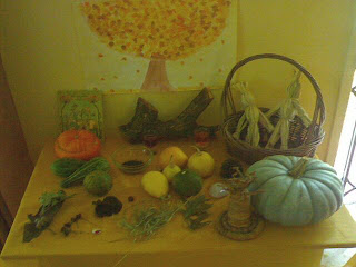 I have also included a photo of our nature table at the moment. It has an Autumn theme, with all our gourds and pumpkins that we harvested from our veggie garden. We have been busy making Autumn crafts as well. In the basket you can see corn husk men. We used the husks from our corn that we grew ourselves. These were such a treat to make!